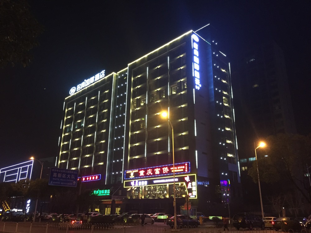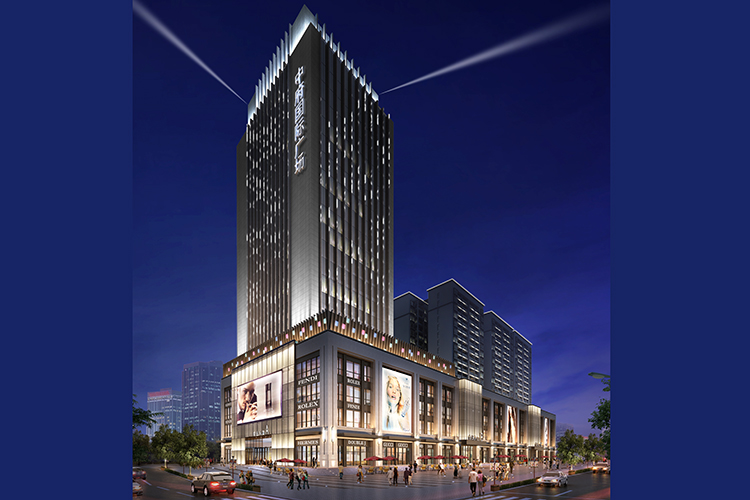長沙酒店亮化 戶外亮化設計 LED夜景亮化安裝及施工工程采用IP 65防護等級的LED線條燈,十字星光燈搭配設計。燈具色溫采用冷、暖色搭配設計,主線條燈勾勒出建筑亮化的輪廓,采用暖色星光燈營造長沙酒店亮化的溫馨氛圍。